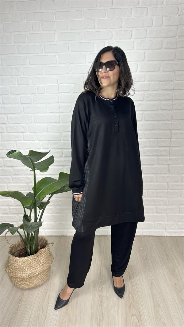 Şıklığı ve konforu bir araya getiren büyük beden bluz-pantolon ikili takım, günlük kombinlerinizden zarif bir stil sunar. Rahat kalıbı ve modern tasarımı sayesinde hem hareket özgürlüğü sağlar hem de şık bir görünüm oluşturur. Farklı aksesuarlarla kolayca kombinlenebilen bu takım, gardırobunuzun vazgeçilmez parçalarından biri olacaktır.