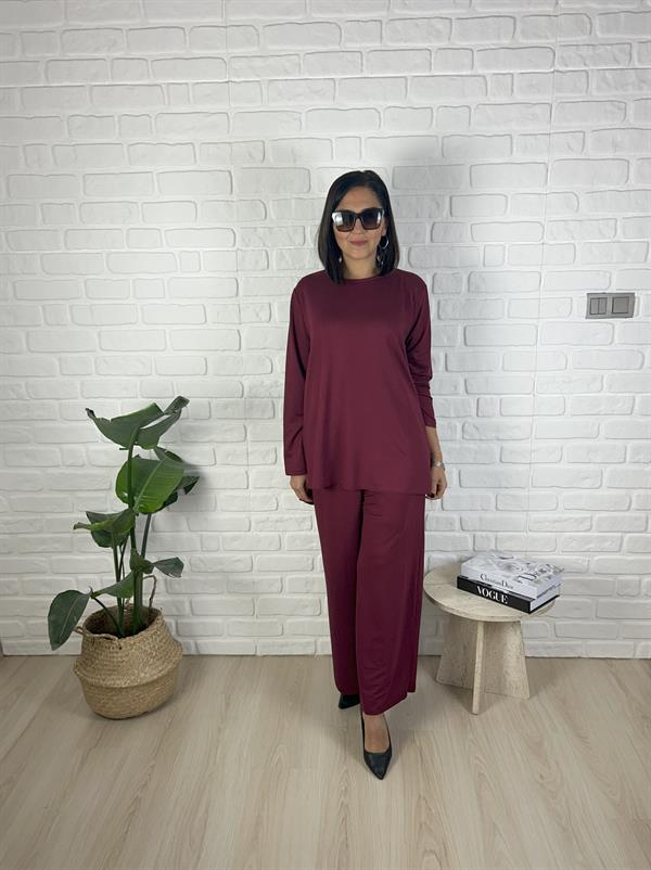 Büyük Beden Bordo Bluz-Pantolon İkili Takım