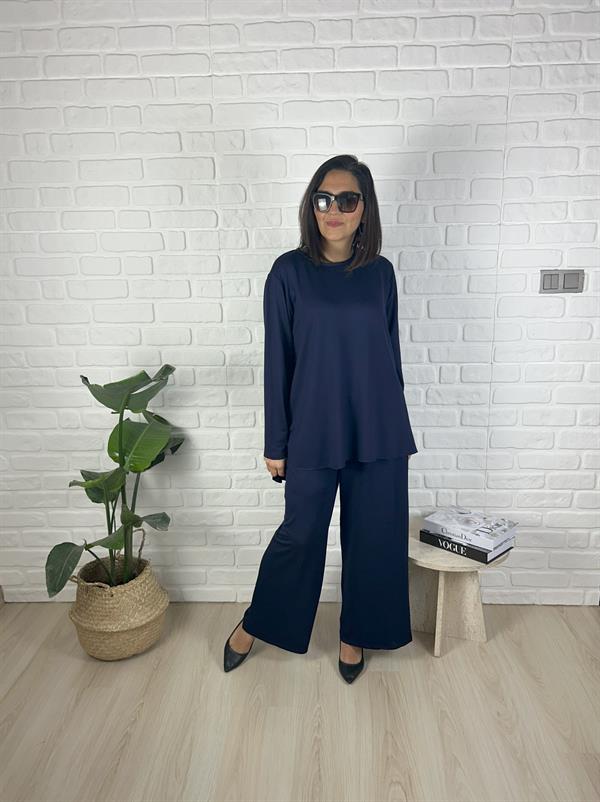 Büyük Beden Lıkralı Esnek Rahat Kalıp Lacivert Bluz-Pantolon İkili Takım-bgt52 (BGT54)
